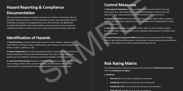 From hazard reporting processes to compliance checklists, we deliver documentation that aligns with Australian safety standards and mining regulations. Our goal is to keep both your people and your paperwork audit-ready.